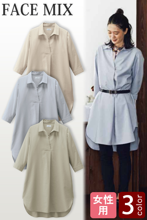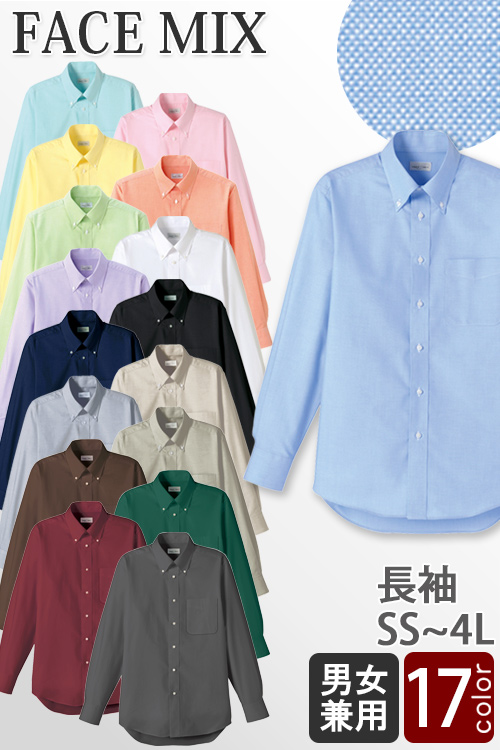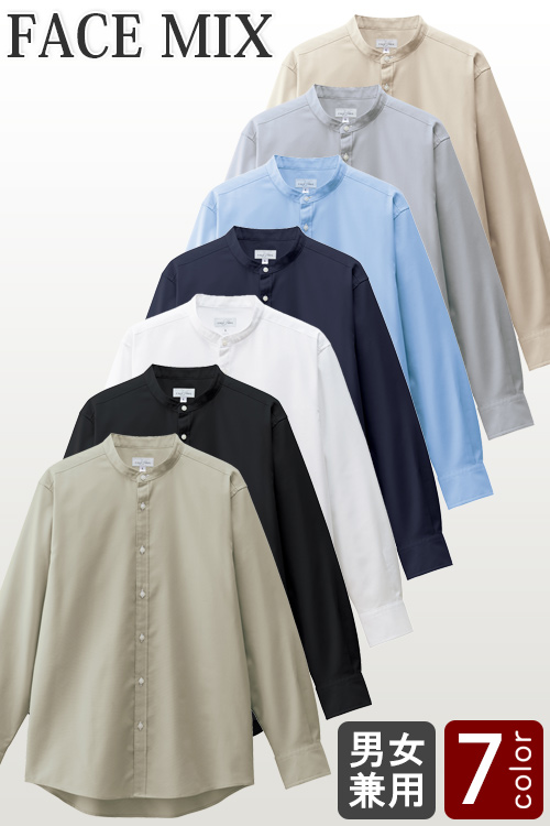 【飲食店販売店制服】オックスフォード生地ナチュラルな スタンドカラー長袖シャツ7色【兼用】