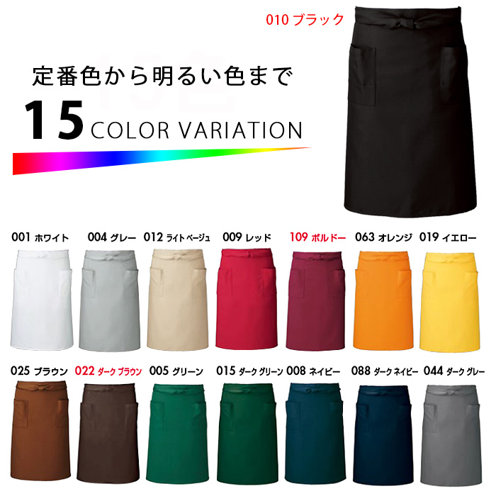 【飲食店販売店制服】丈65cm ミドル腰下エプロン15色 ストレッチ・撥水・制電加工