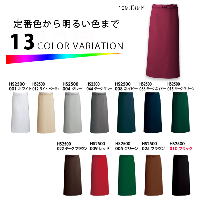 丈90cm ソムリエロング腰下エプロン15色ストレッチ・撥水・制電加工