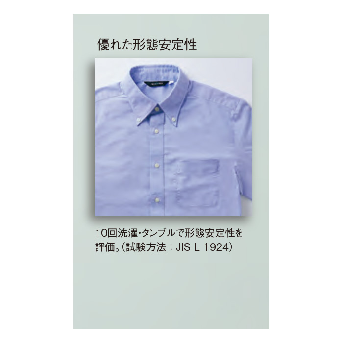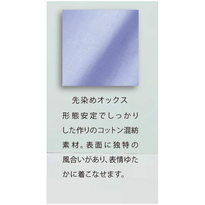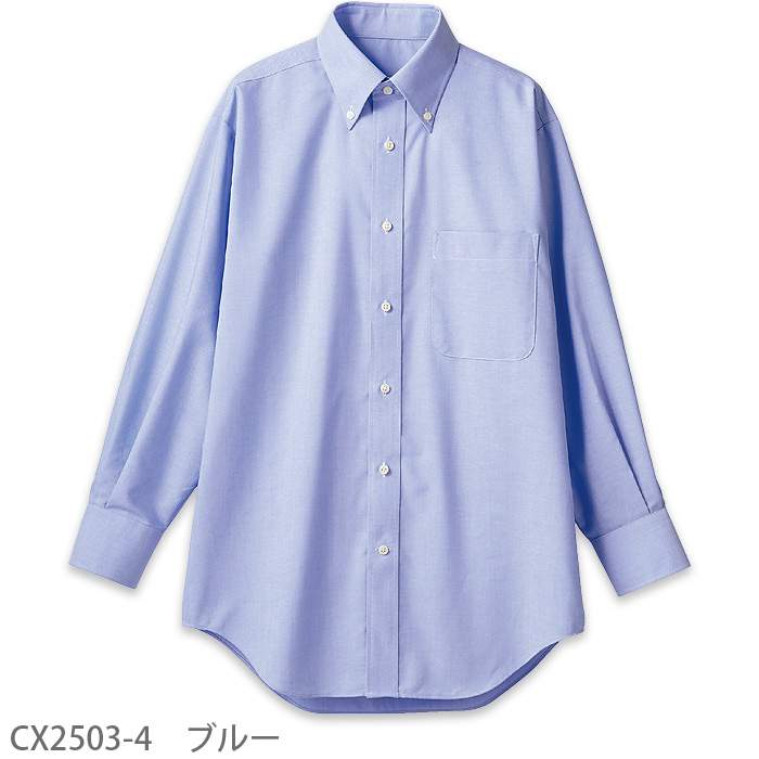 形態安定でしっかりしたつくりのコットン混紡素材の長袖シャツ。左胸ポケット付き。表面に独特の風合いがあり、清潔感があるのでお客様の前に出ても好印象。カラーは爽やかな印象の白、ブルー。サイズはSS~5Lの8展開です。清潔感のある風合いで優れた形態安定性があるのでカフェの他スーパーや酒屋さんにもお勧めです。