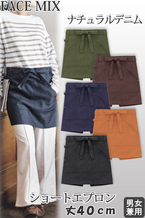 【飲食店販売店制服】ショートエプロン【兼用】デニム調なのにキレイ見えで優しい着心地のエプロン