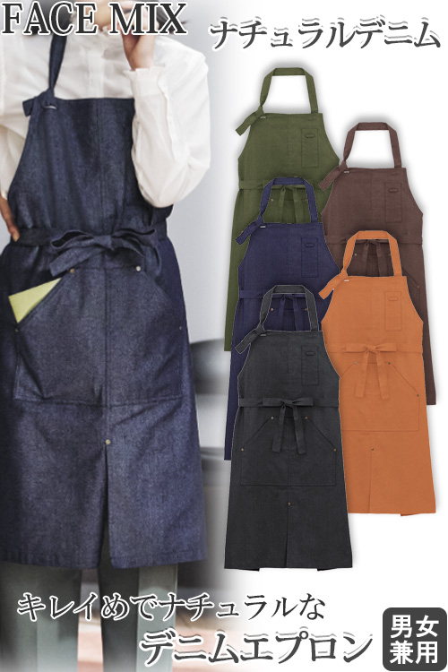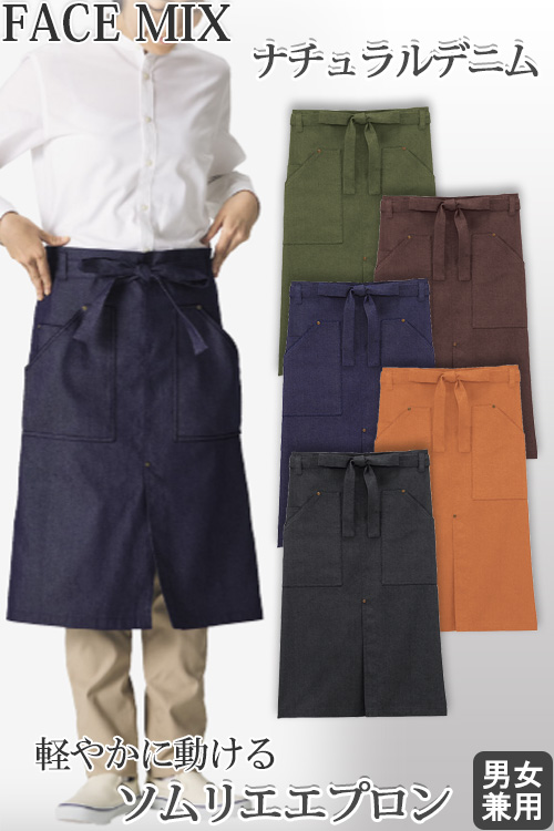 【飲食店販売店制服】ソムリエエプロン【兼用】デニム調なのにキレイ見えで優しい着心地のエプロン