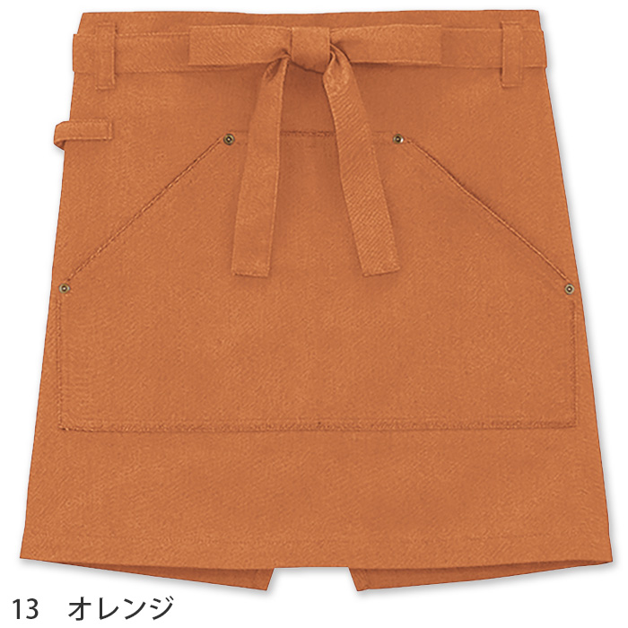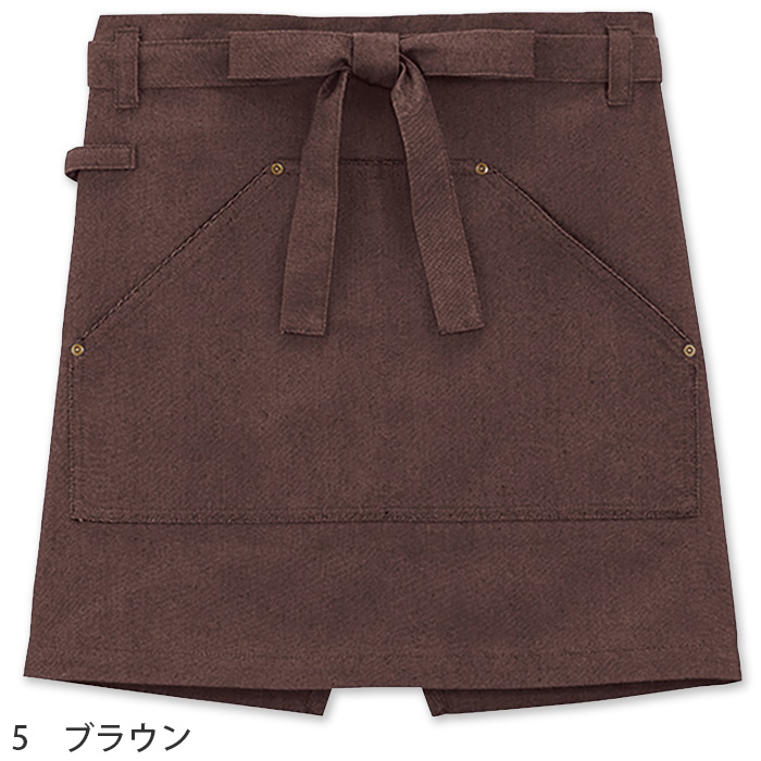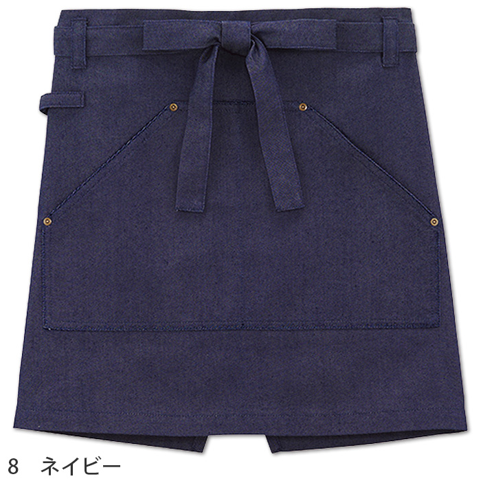 ¥5,610ワークっぽさときれい見えを両立した、ナチュラルで機能的なデニム調シリーズのショートエプロン。フロントポケット、左脇バックポケット付き。