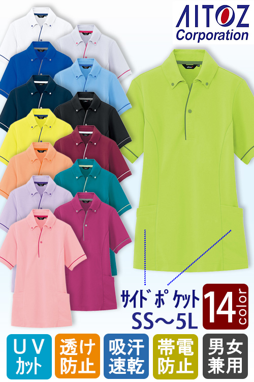 【介護・清掃・物流制服】SS〜5L サイドポケット 半袖ボタンダウン ニットポロシャツ14色【兼用】