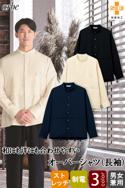 • ロングシャツ 六分袖 スタンドカラー【女性用】 両脇スリットあり AS8902 サイズ
