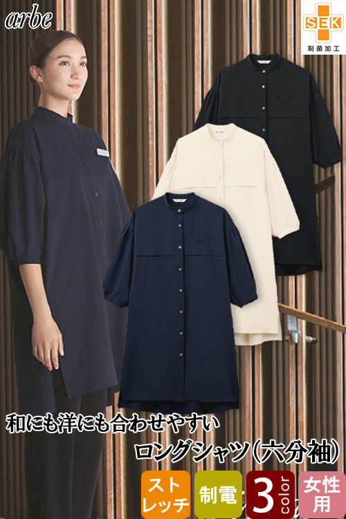 • ロングシャツ 六分袖 スタンドカラー【女性用】 両脇スリットあり AS8902 モデル