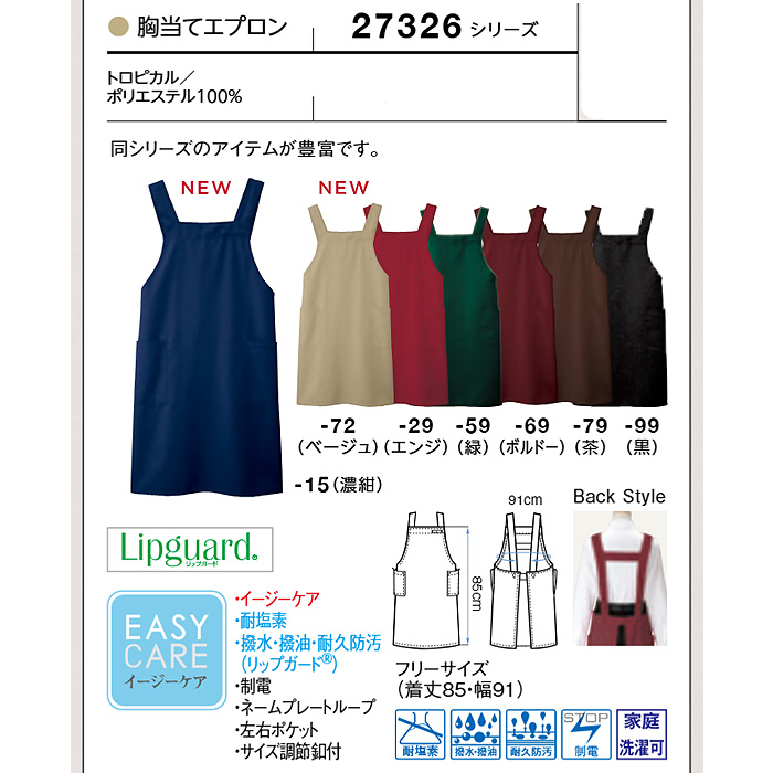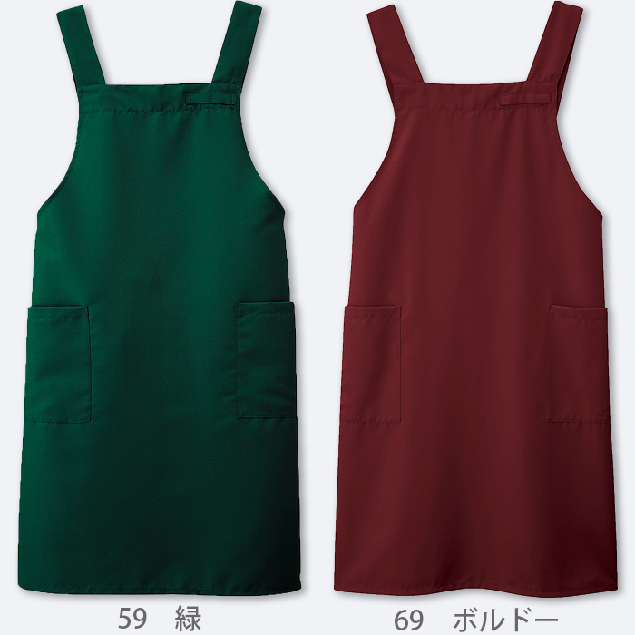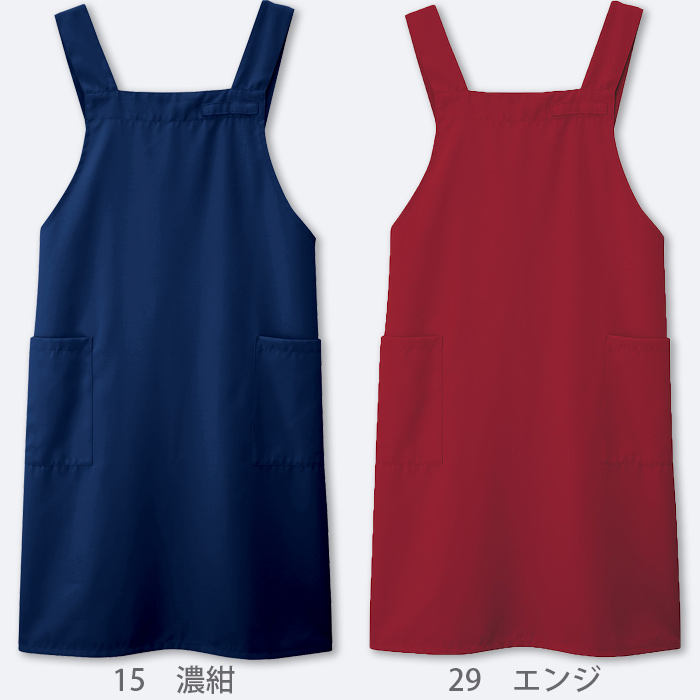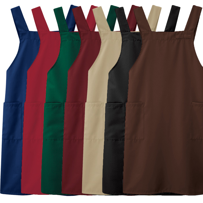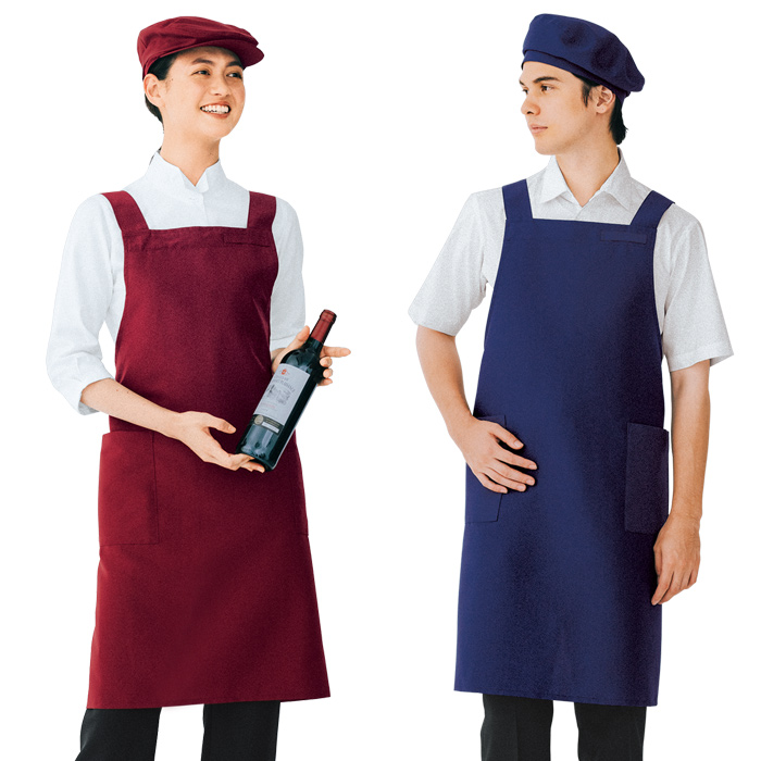 胸当てエプロン H型【兼用】丈85cm 7色 イージーケアで汚れに強いエプロン