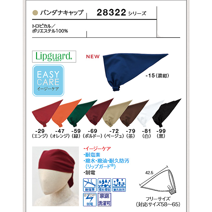【飲食店販売店制服】バンダナキャップ【兼用】フリーサイズ 9色 イージーケア