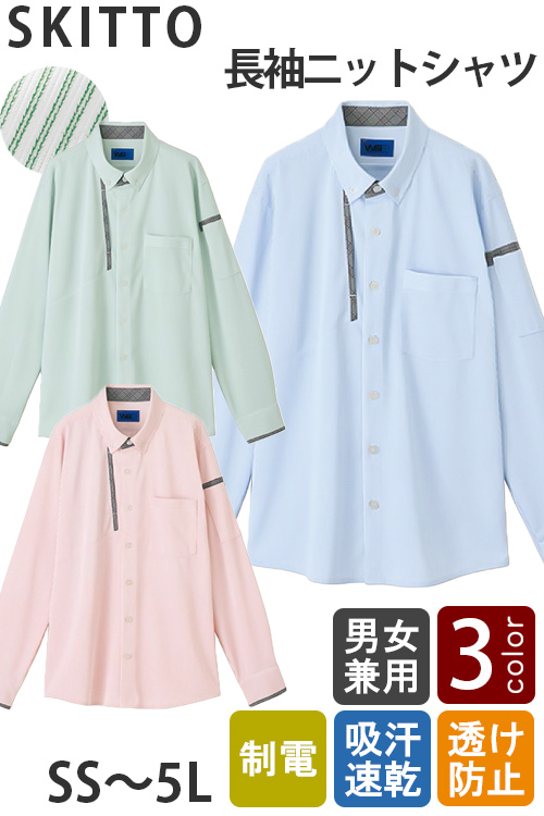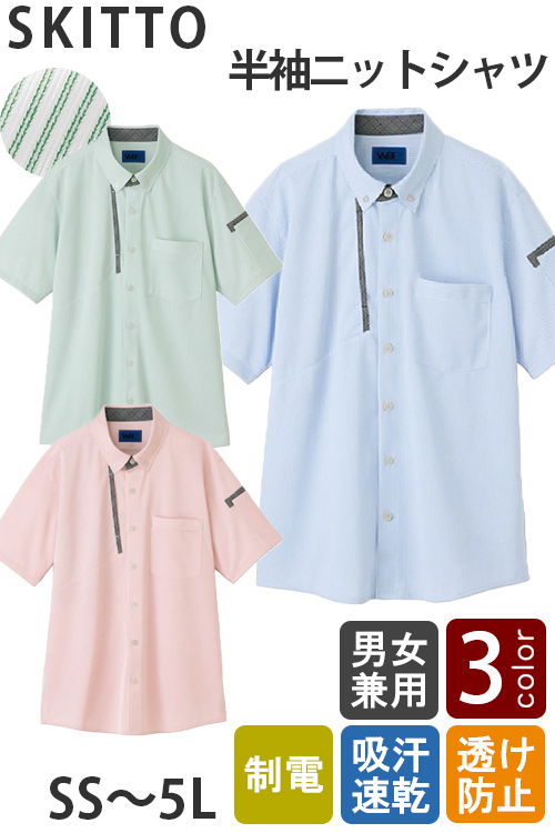 【清掃・介護・幼保園制服】半袖ニットシャツ3色【兼用】ストライプ柄が爽やか好印象