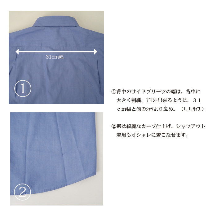 ・男女兼用ながら3Sサイズからの展開で女性にうれしい。7Lまであるシャツはめったにない。