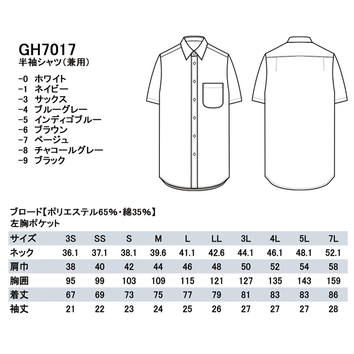 | サイズ | 3S,SS,S,M,L,LL,3L,4L,5L,7L |