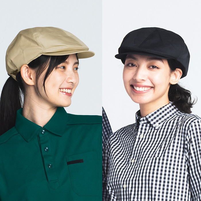 【飲食店販売店ユニフォーム】毛髪落下防止ネット付 ハンチング帽【10色】撥水、軽くて丈夫な綿混素材