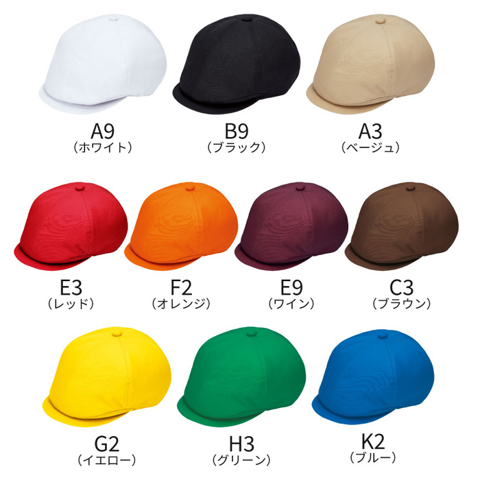 【飲食店販売店制服】毛髪落下防止ネット付 ハンチング帽【10色】撥水、軽くて丈夫な綿混素材