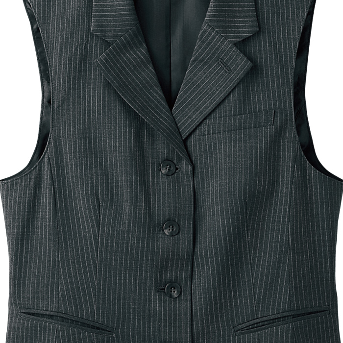 【飲食店販売店制服】襟付きチャコールグレーベスト【女性用】重厚感のあるシャドーストライプ柄