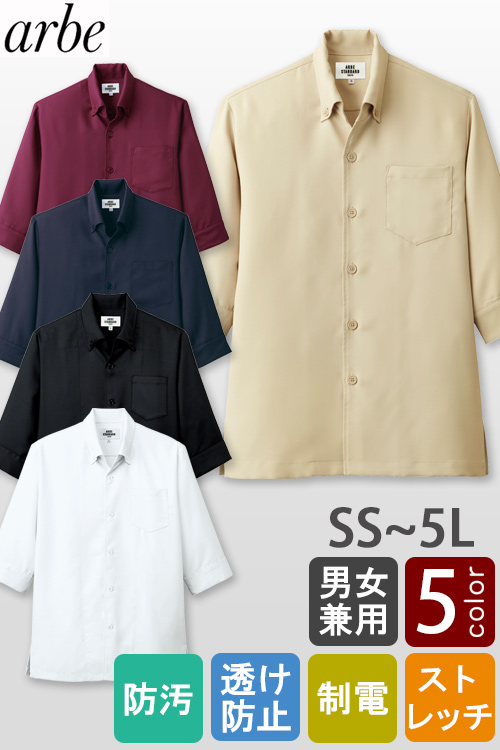 五分袖ボタンダウンコックシャツ【Unisex】5色 SS~5L ストレッチ・制電・透け防止・防汚加工