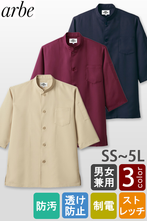 ボタンダウンのシンプルなデザインのコックシャツ。SS~5Lサイズ。和洋中全てのお店にオススメのシックな5色。五分袖で腕まくりがいらず、作業中の邪魔になりません。手触りがよくシワになりにくいツイル素材。ストレッチ・制電・透け防止・防汚加工と機能性も抜群です。