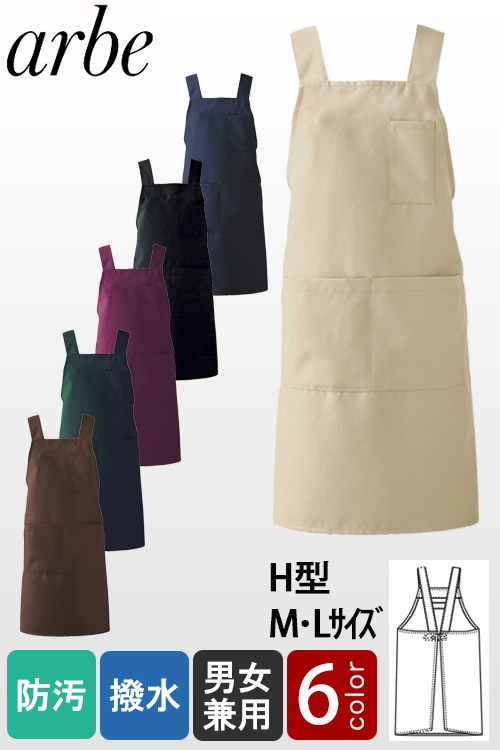 業務用H型エプロン(全6色)汚れに強く撥水機能付きで飲食店制服にお勧め!ウエスト調節可