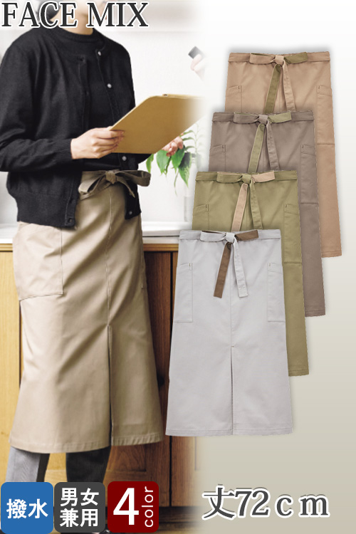 【飲食店販売店制服】腰下ロングエプロン【15色】兼用 防脱色・非フッ素撥水