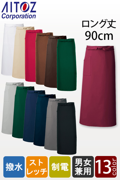 【飲食店販売店制服】丈90cm ソムリエロングエプロン15色 ストレッチ・撥水・制電加工AZ8638