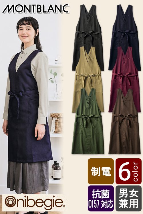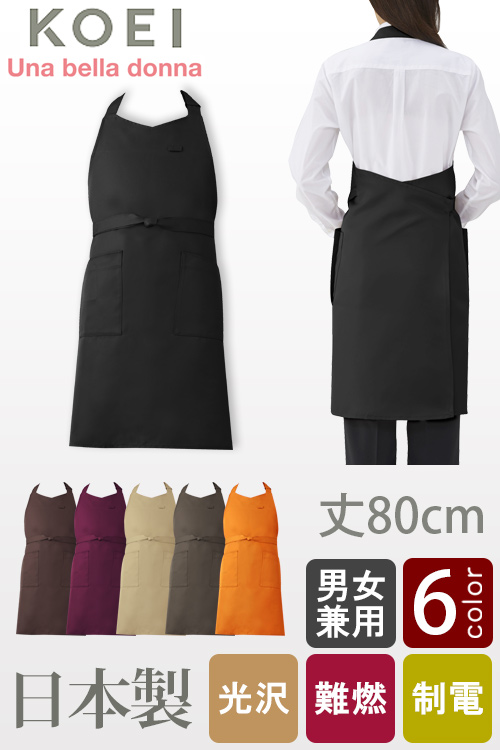 【店舗在庫限り】純国産!胸付首掛けエプロン丈80cm<全6色>制電 難燃