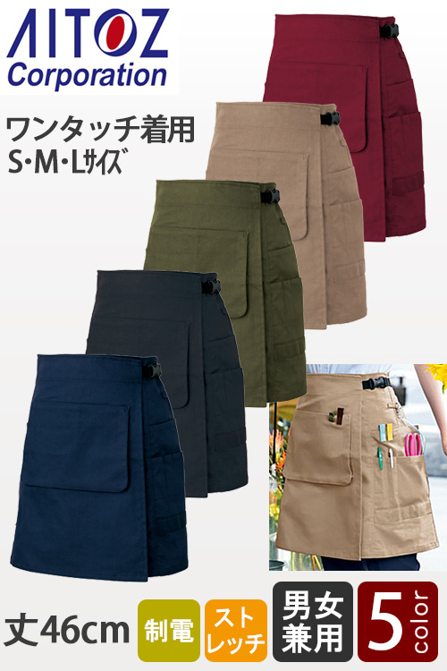 【飲食店販売店制服】前掛【兼用】4色 バックル仕様で簡単装着 防脱色加工