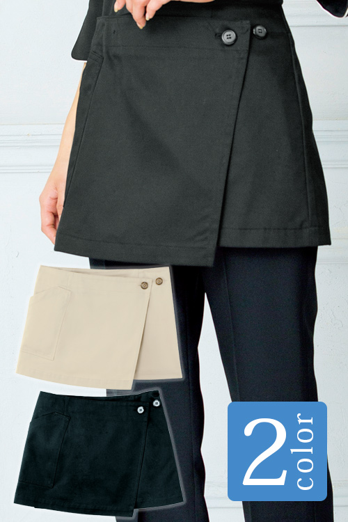 アシンメトリーデザイン 巻きスカートエプロン<全4色>