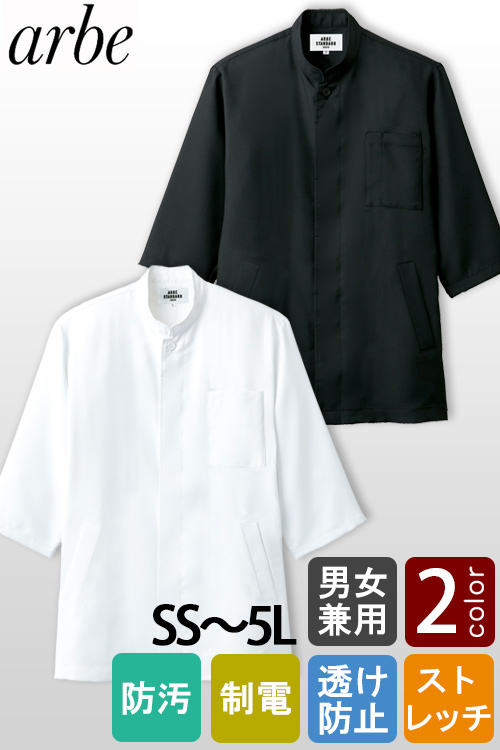 五分袖コックシャツ【男女兼用SS~5L】透けにくいストレッチ素材