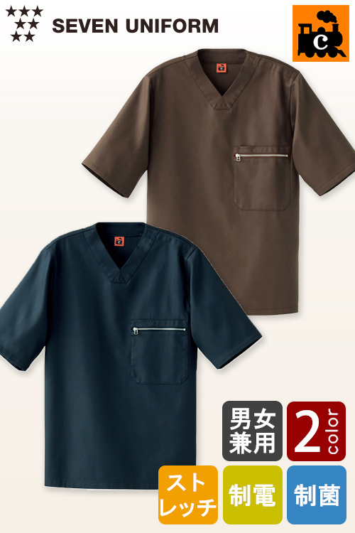 【飲食店販売店制服】七分袖コックシャツ オープンカラー(えり)がかわいい 2色【兼用】