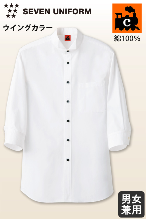 【飲食店販売店制服】綿100%(ブロード)洗濯に強く丈夫 7分袖ウイングカラーシャツ【兼用】