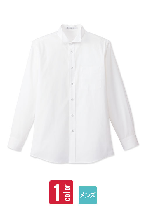 【飲食店販売店ホテル制服】ウイングカラー長袖シャツ【男性用】(ホワイト)