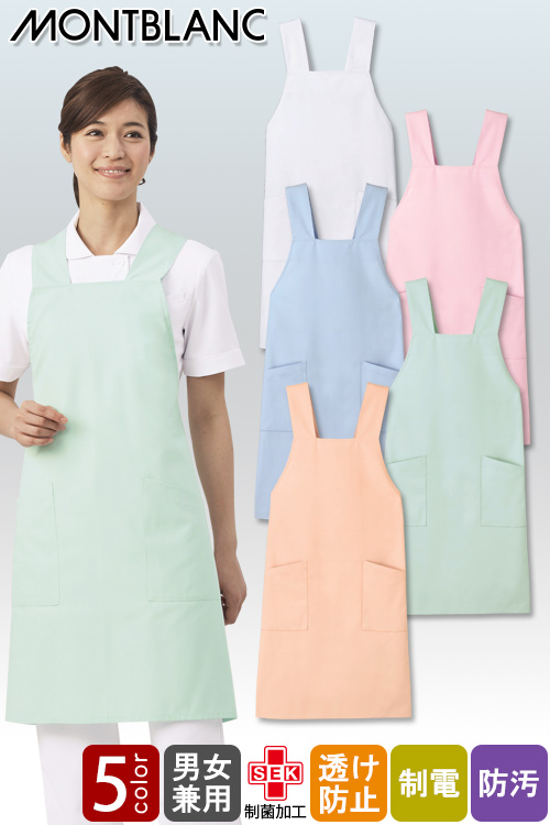 胸付H型エプロン 耐漂白・はつ油・ストレッチ加工がうれしい多機能業務用エプロン 9色
