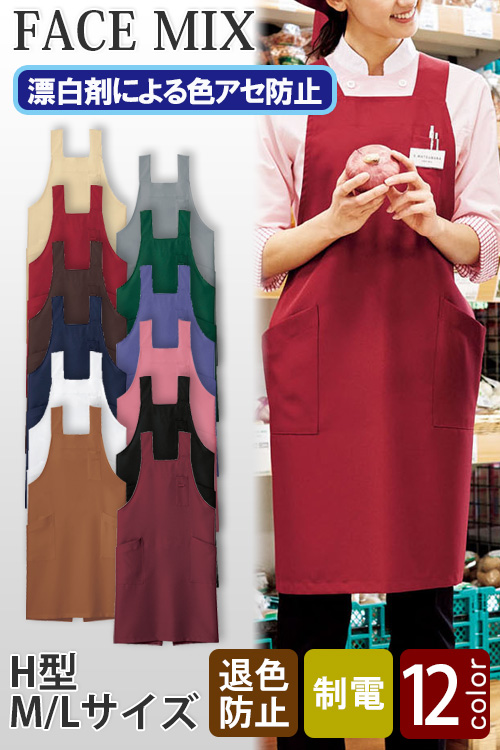 【飲食店販売店制服】12色から選べるH型エプロン【兼用】漂白剤による色アセを防止。