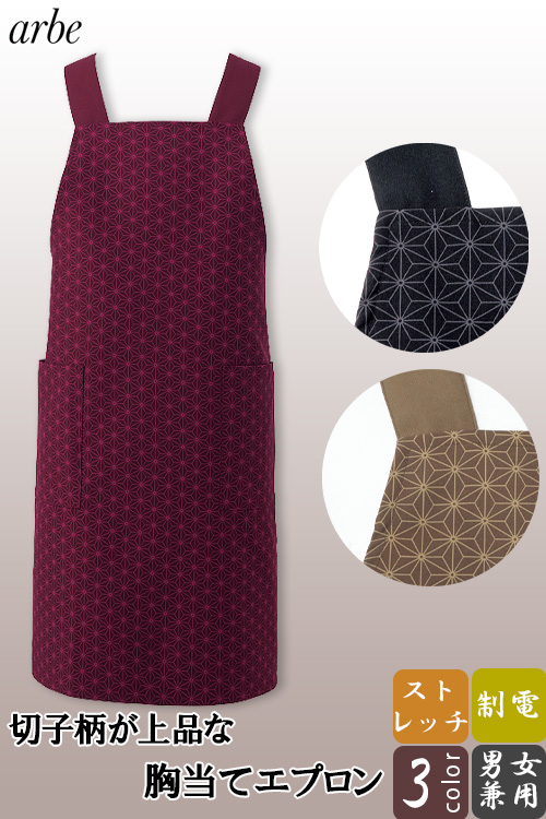 【飲食店販売店制服】胸当てエプロン【男女兼用】 上品な切子柄がお店に華を添えるエプロン