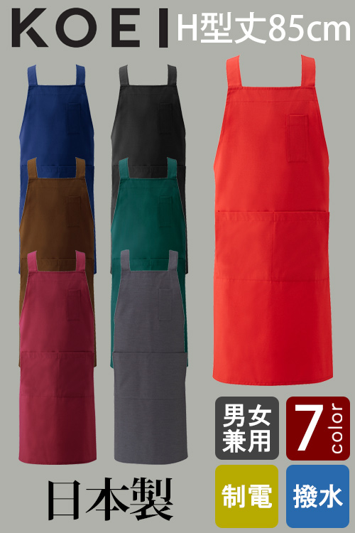 【飲食店販売店制服】胸当てエプロン H型【兼用】丈85cm7色 イージーケアで汚れに強いエプロン