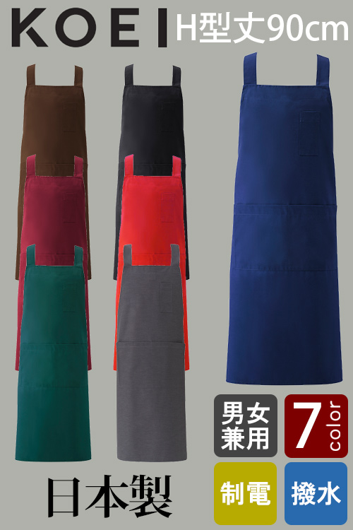 男性にオススメ 胸付H型ロングエプロン丈90cm 純国産<全4色>制電・難燃
