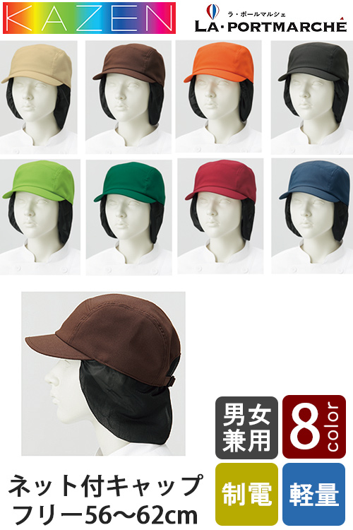【飲食店販売店制服】マスク掛け、毛髪ネット付き 帽子【15色】兼用 漂白剤に強い