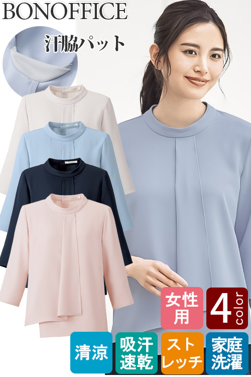 【飲食店販売店制服】V開き&スタンドカラーデザイン 七分袖シャツ5色【兼用】