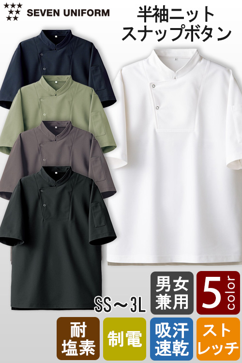 【飲食店販売店制服】エリなし半袖調理白衣【兼用】涼しい・体毛落下防止ネット付