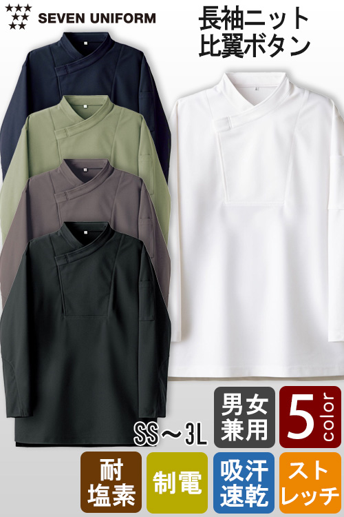 【飲食店販売店制服】高品質で低価格 高コスパ スタンドカラー長袖シャツ10色 男女兼用