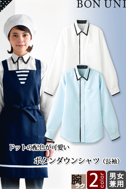 飲食店販売店制服 ボタンダウンシャツ(長袖)【兼用】2色 ドットの配色が可愛い爽やかシャツ