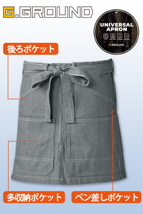 【飲食店販売店制服】デニム&ヒッコリー 腰下ショートエプロン(男女兼用)