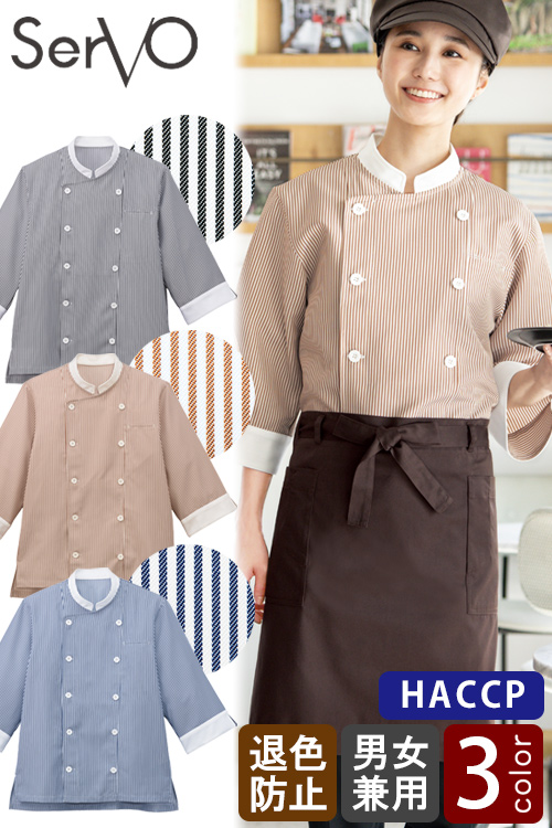 【飲食店販売店制服】HACCP支援 ヒッコリーストライプ柄ショップコート【3色】兼用