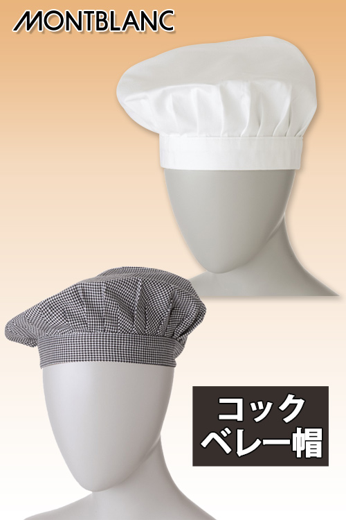 飲食店販売店制服 優しい印象のコック帽 ベレー帽タイプ 白・千鳥格子【男女兼用】