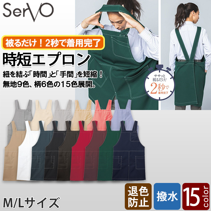 【飲食店販売店制服】時短かぶるだけエプロン 2秒で着用 【15色】兼用 防脱色・非フッ素撥水
