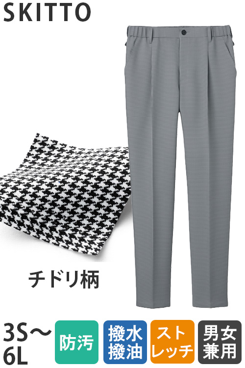 【清掃・介護・物流制服】チドリ柄パンツ【兼用】総ゴム仕様ワンタック