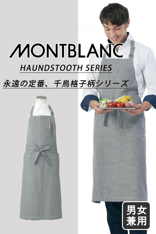 飲食店販売店制服 永遠の定番、千鳥格子柄胸当てエプロン 男女兼用