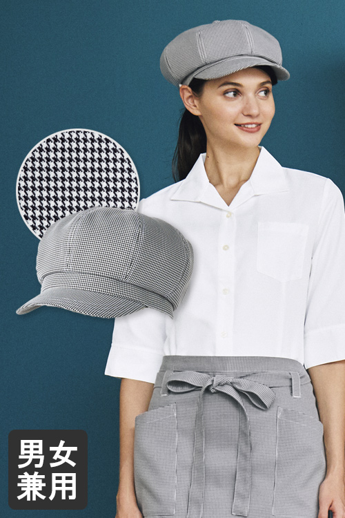 【飲食店販売店制服】かわいすぎるふんわりキャスケット チドリ・チェック柄