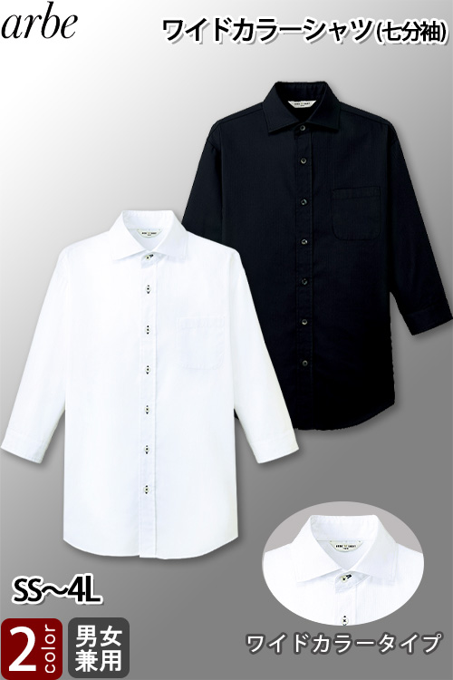 七分袖ワイドカラーシャツ【男女兼用】2色★首回りスッキリ!小顔効果あり