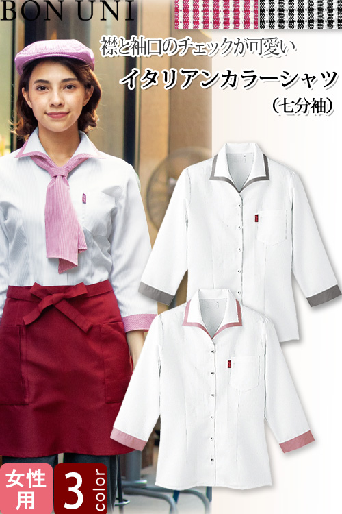 【飲食店販売店制服】イタリアンカラーシャツ 七分袖【女性用】2色 エレガントな襟と爽やかさのコラボ
