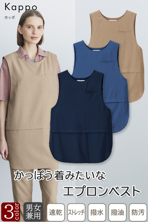 物流・清掃・飲食・介護制服 エプロンベスト【兼用】3色 撥水・撥油・防汚加工で汚れに強いエプロン